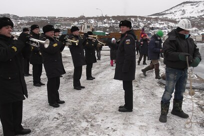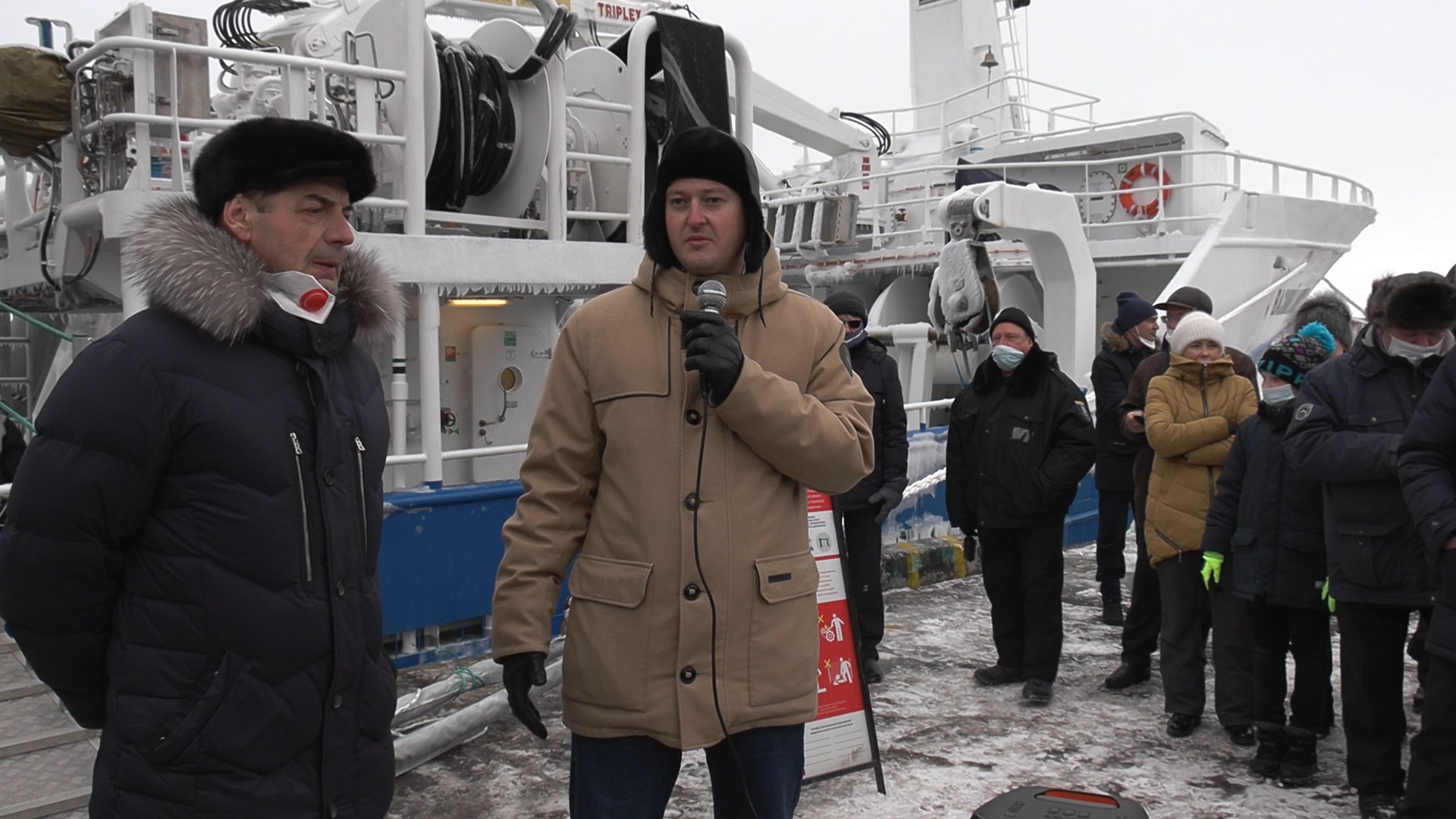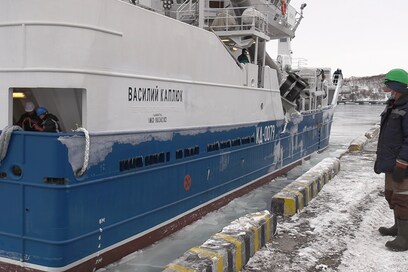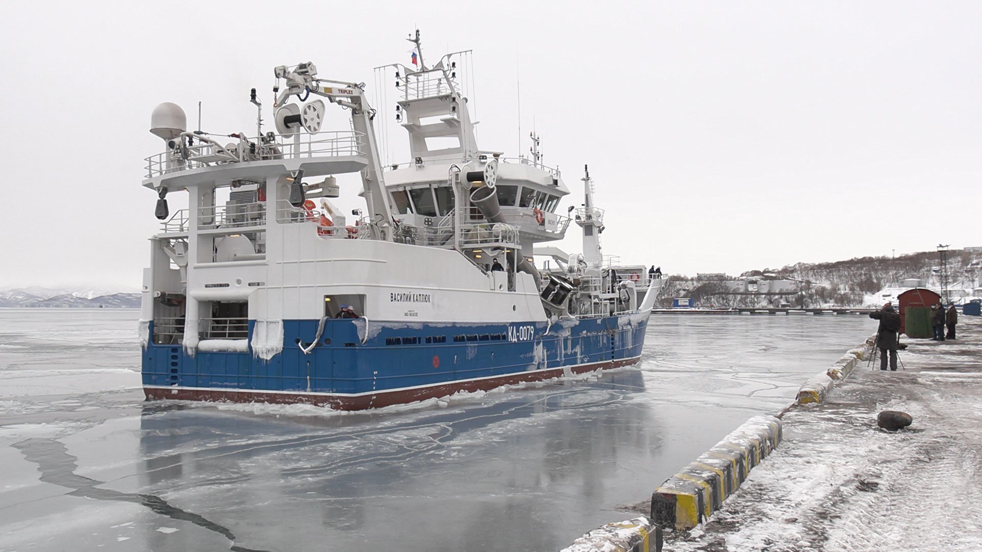 В торжественной церемонии встречи судна приняли участие губернатор Камчатского края Владимир Солодов, министр рыбного хозяйства Андрей Здетоветский и председатель Рыболовецкого колхоза имени В.И. Ленина Сергей Тарусов.